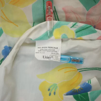 Vintage U.S. queen-size bed sheet typically fits a mattress that measures 150 cm x 200 cm (about 60″ x 79″ inches).